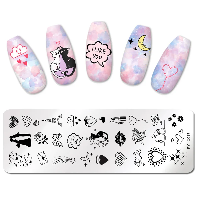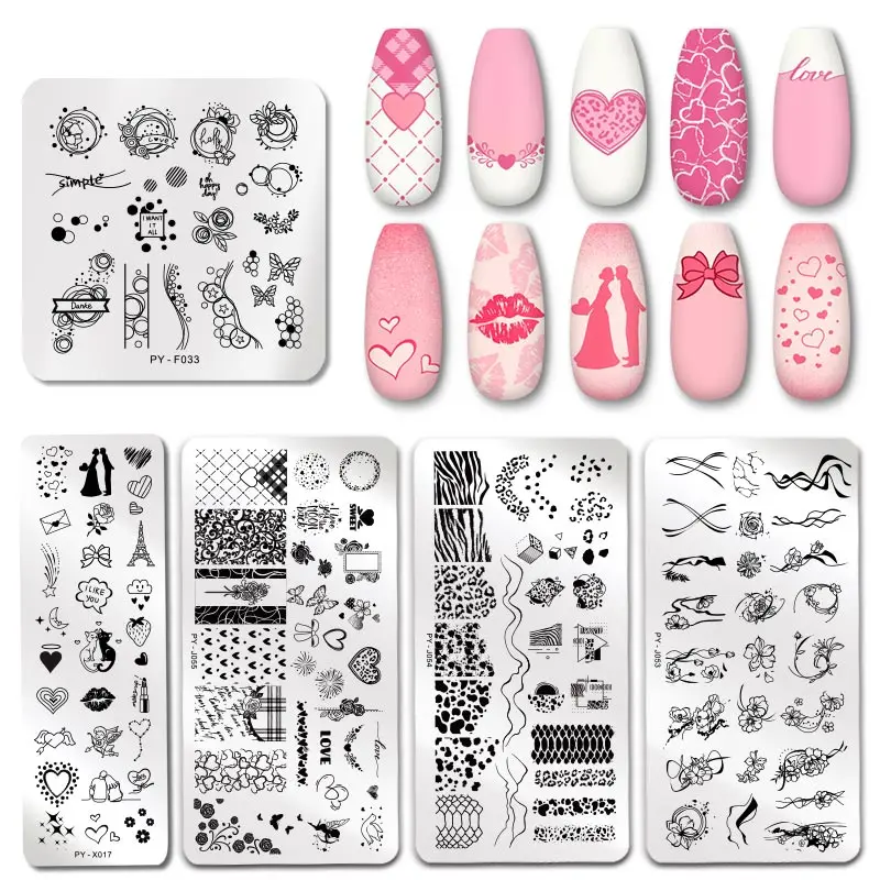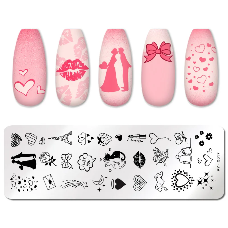 Пластины для стемпинга ногтей PICT YOU, на День Св. Валентина, с рисунком розы, любовь, трафареты для ногтевого дизайна