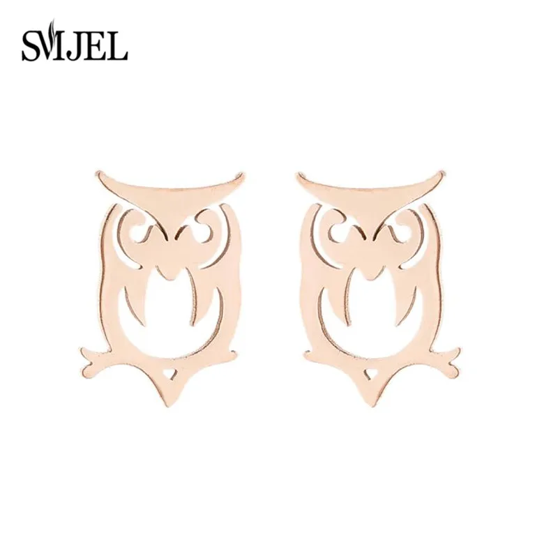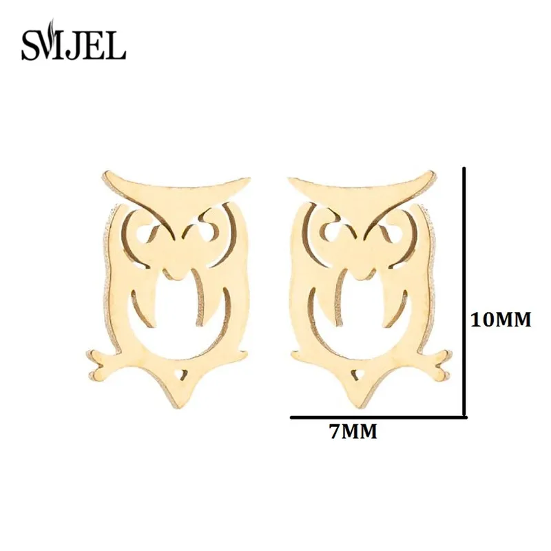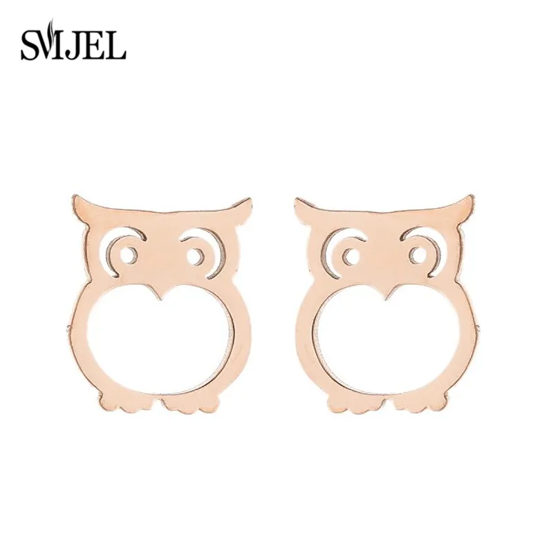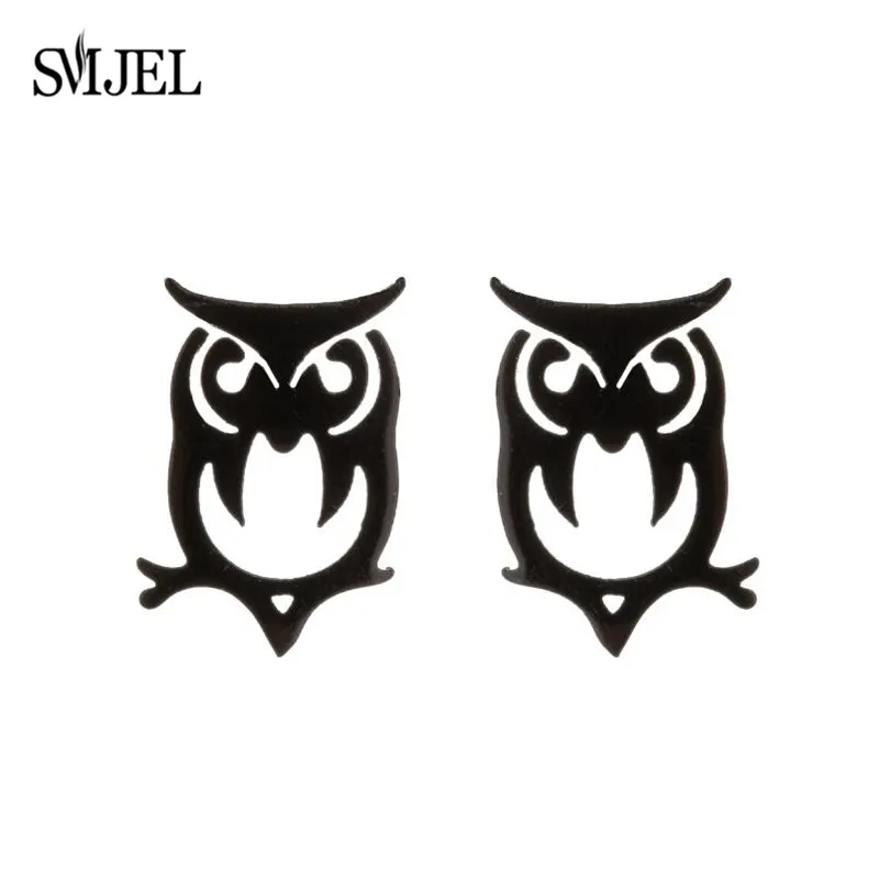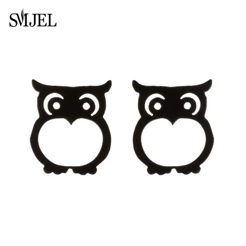 Женские серьги-гвоздики SMJEL в виде совы, милые маленькие черные серьги из нержавеющей стали с животными, подарок на день рождения, для детей