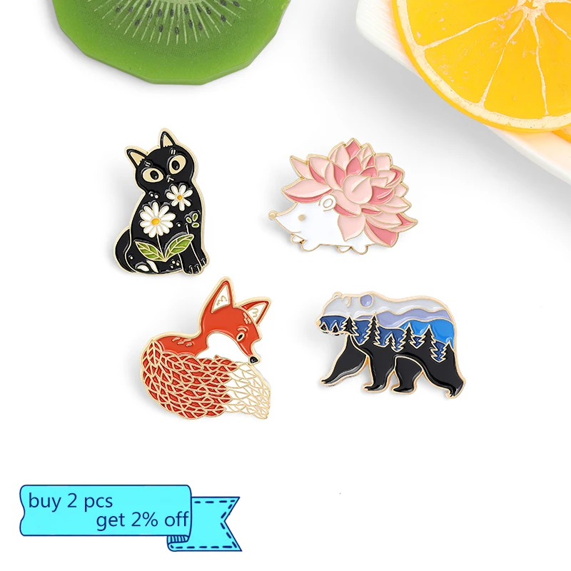 Лесной сад эмали штырь изготовленный на заказ "Лиса", "Кот", "медве...