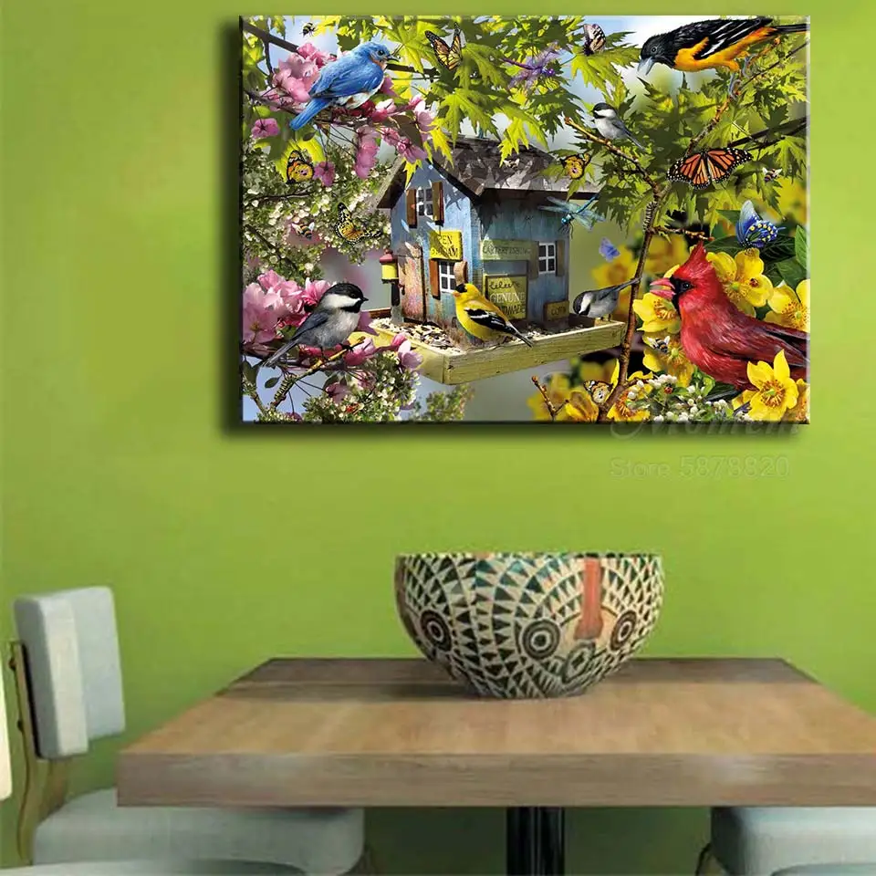 Когда-либо в настоящий момент алмазная живопись Наборы для взрослых птица Семья Цветочная вышивка аксессуары вышивка крестом домашний декор 5L1477
