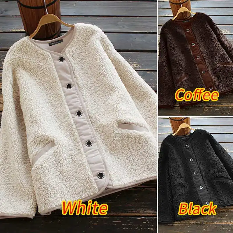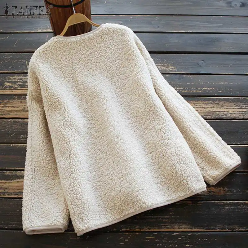 Модные женские куртки ZANZEA 2021, пальто, повседневное флисовое те...