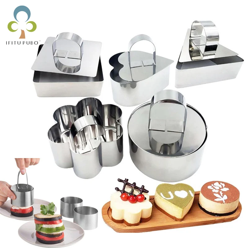123 шт. формы для пирожных Нержавеющаясталь торт набор колец 5 форма для муссов и десертов пресс-форм с толкателем блин кондитерских изделий инструмент для нарезки печенья в виде ZXH