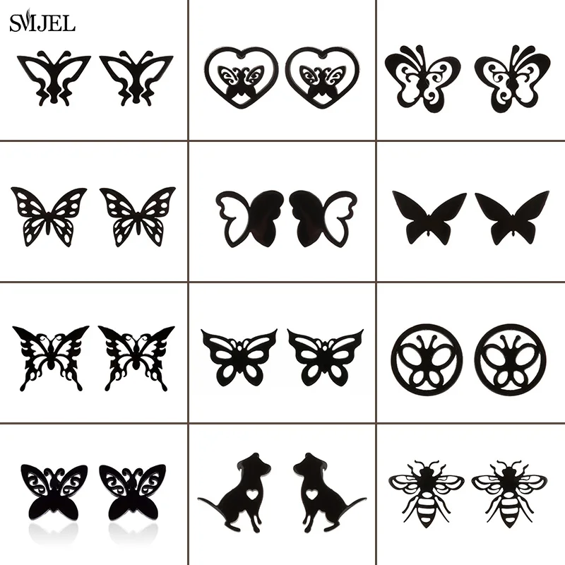 Черные серьги-бабочки из нержавеющей стали для женщин и девушек, модные Мультяшные серьги-бабочки с животными, маленькие серьги-гвоздики, оптовая продажа ювелирных изделий