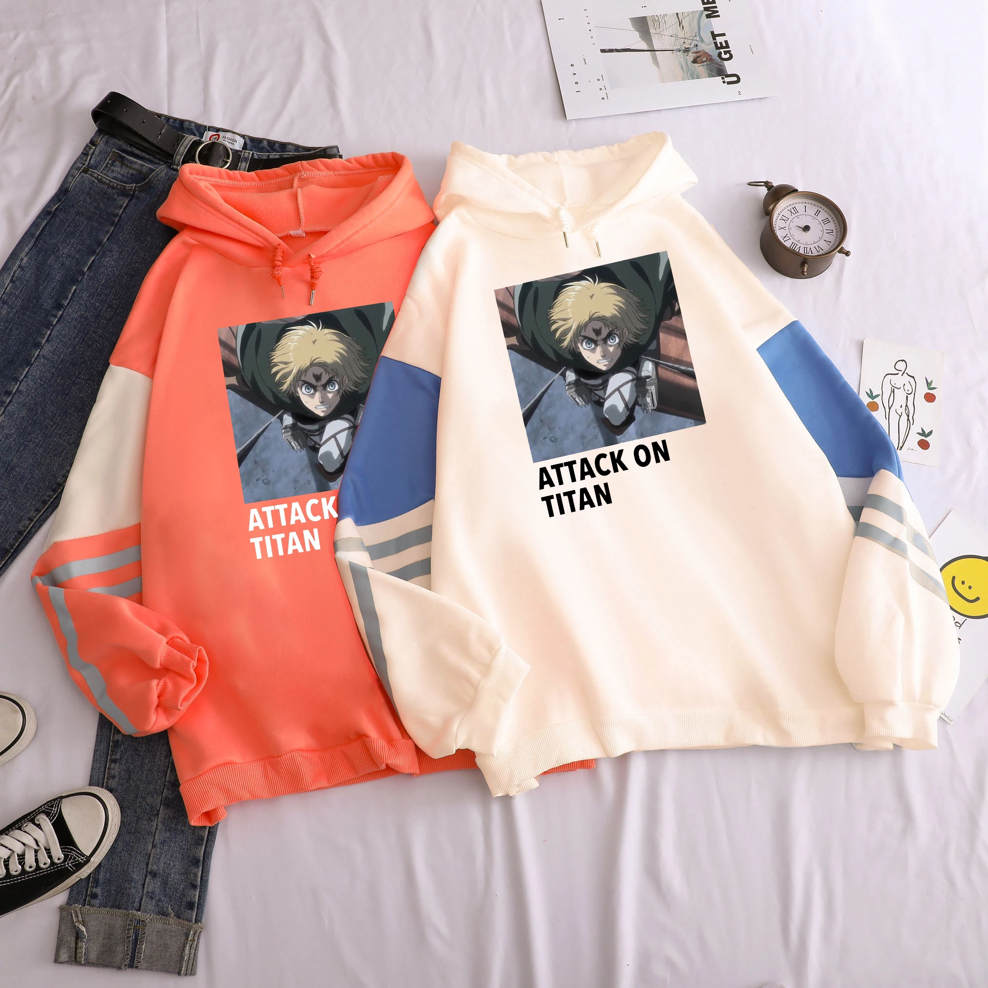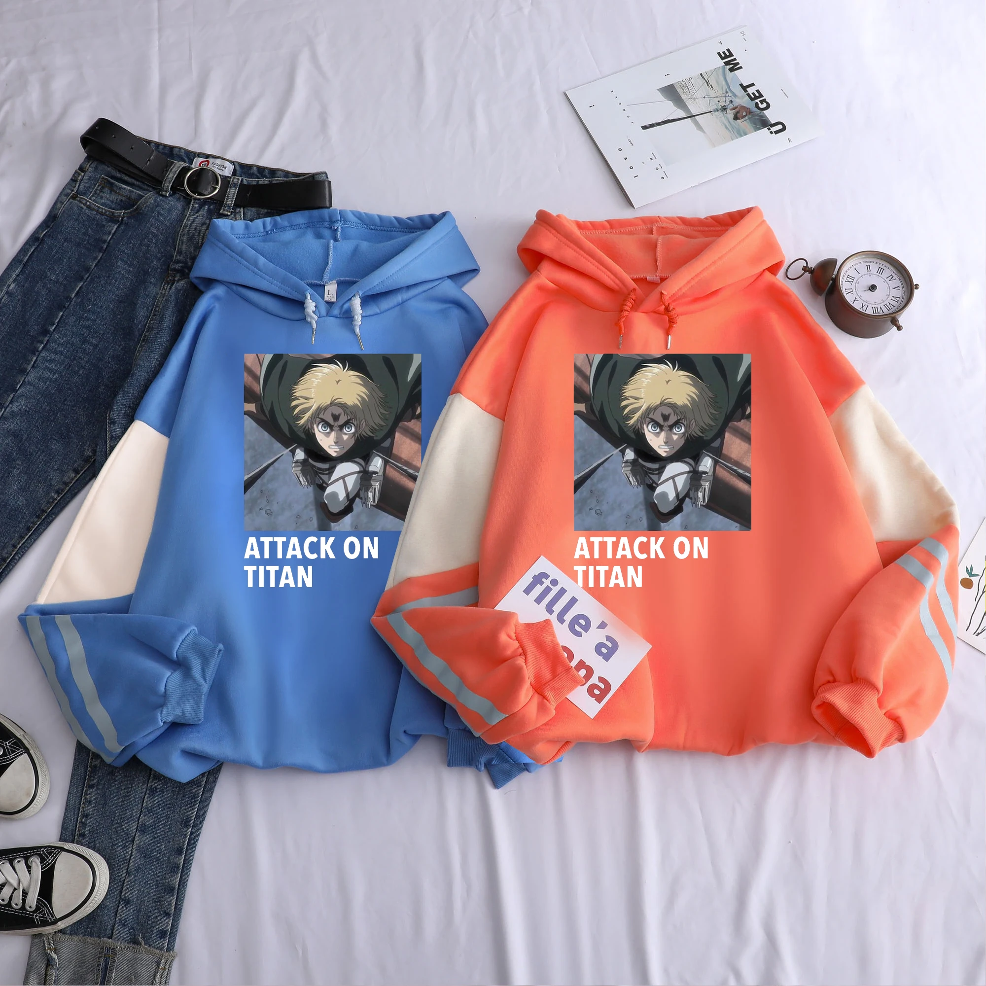 Толстовка унисекс с капюшоном, японское аниме худи с графическим принтом атака на Титанов, худи Armin Arlert, уличная одежда в стиле пэчворк