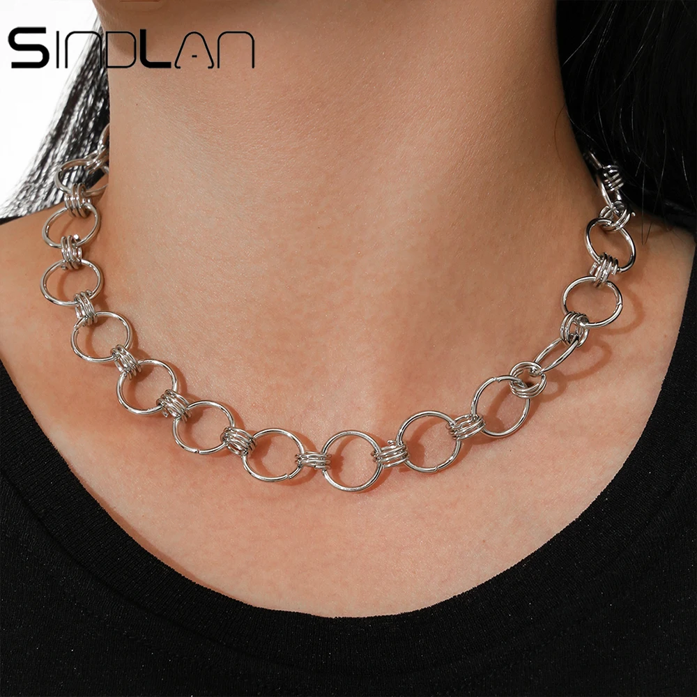 Ожерелье-чокер Sindlan в стиле панк для женщин, простой чокер серебряного цвета в стиле хип-хоп, Геометрическая цепочка, Ювелирное Украшение для пар, 1 шт.