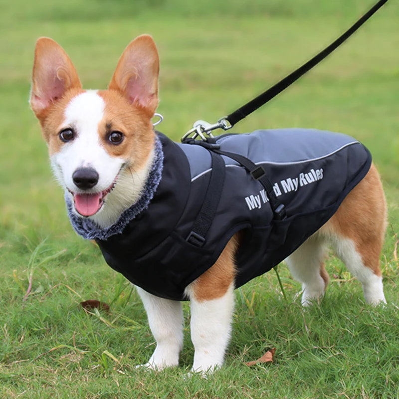 Водонепроницаемая одежда для собак, меховой воротник, куртка, светоотражающий зимний теплый флисовый жилет, утепленное пальто, одежда для средних и больших собак