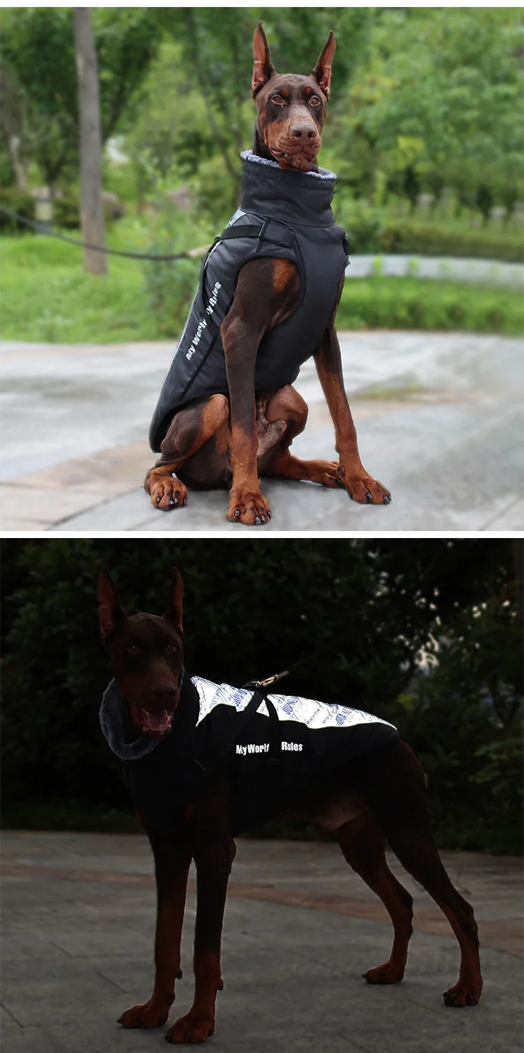 Одежда для собак, светоотражающая водонепроницаемая куртка с меховы...