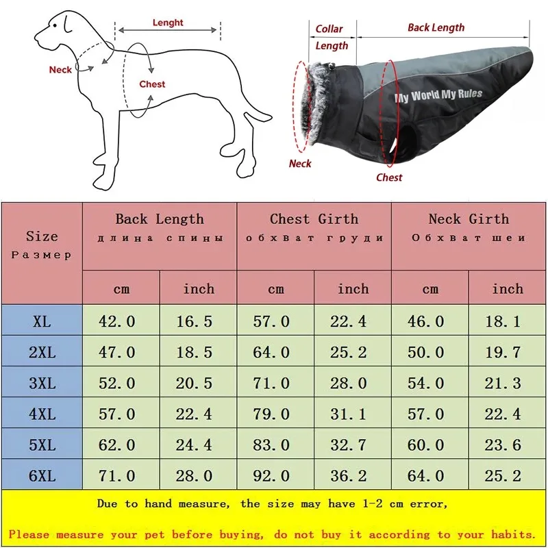Пожалуйста, измерьте длину, шею, грудь тела ваших собак в том же месте, что и линия. Примечание: размер в таблице-это размер собаки. Из-за различных методов измерения размер может отличаться на 1-2 см