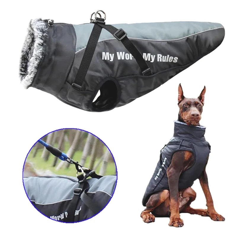 Водонепроницаемая одежда для больших собак, зимнее пальто с меховым...