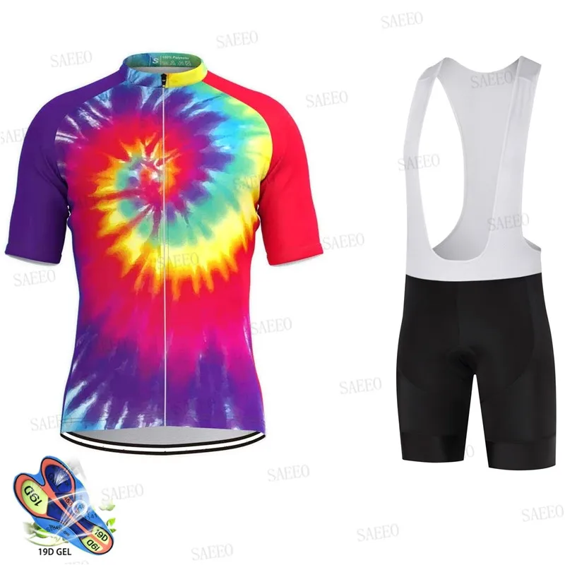 Новинка 2021, Мужская Радужная футболка для велоспорта Tie Dye, дышащая велосипедная одежда, спортивный комплект для велоспорта с коротким рукавом, одежда для велоспорта