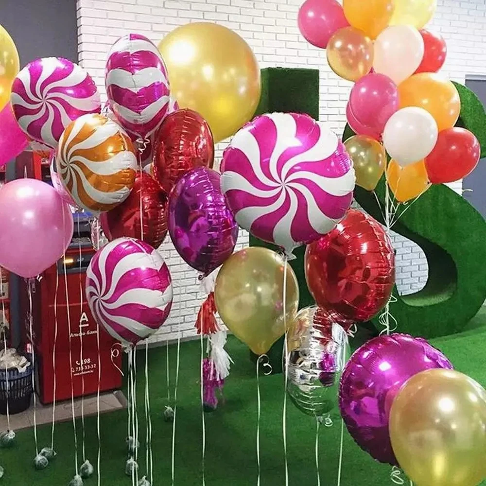 Шары из фольги в виде леденца, цветные алюминиевые шары 18 дюймов, ...