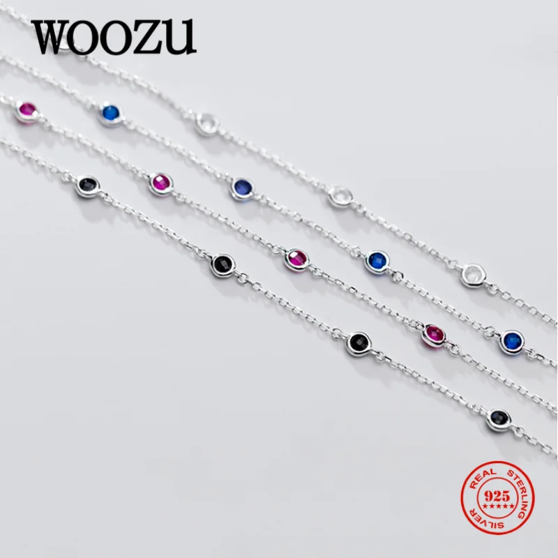 WOOZU натуральная 925 стерлингового серебра минималистский красный круглый циркон цепь очаровательные браслеты из нержавеющей стали для женщин вечерние хип-хоп рок, ювелирное изделие, подарок