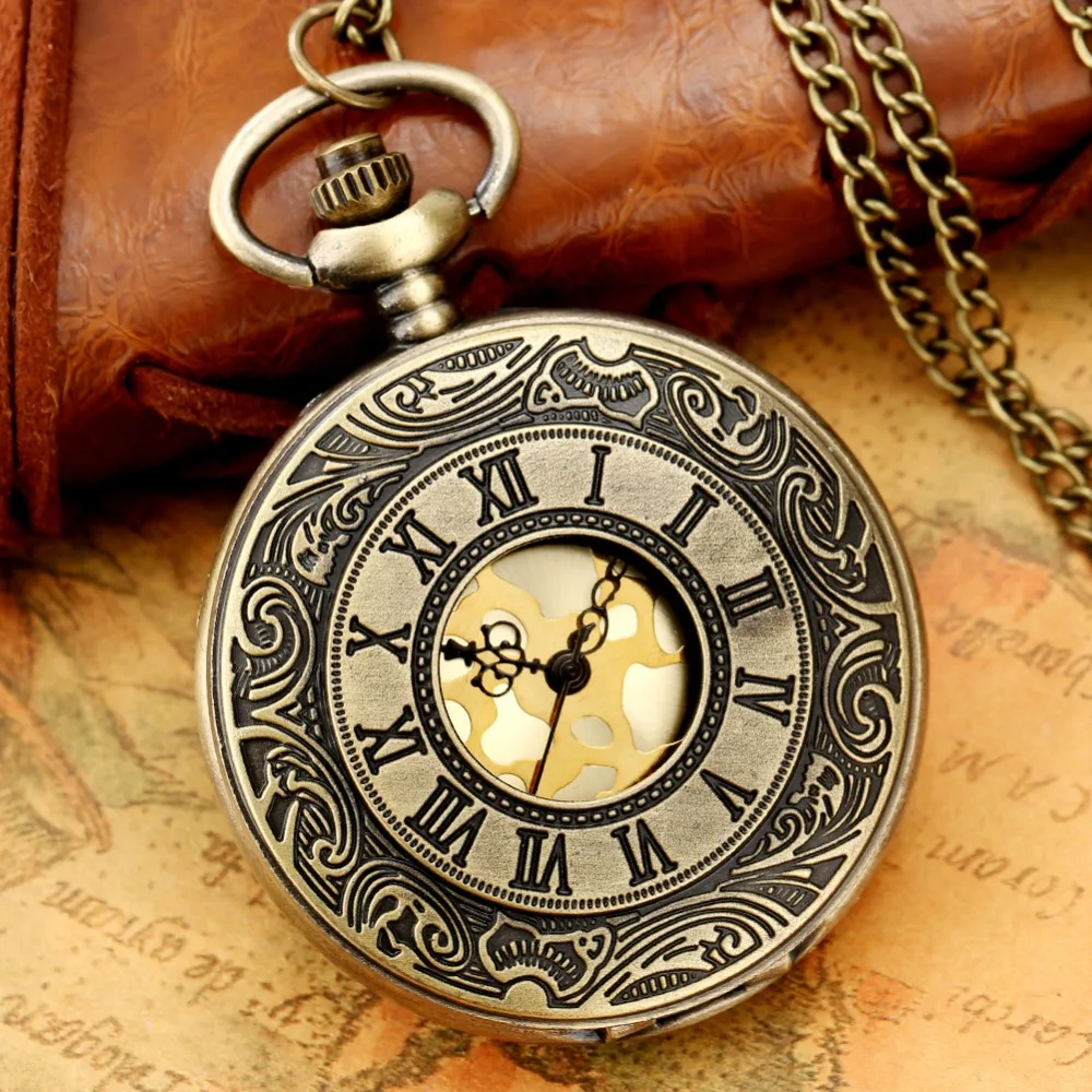 Часы наручные в античном стиле для мужчин и женщин, кварцевые карманные с подвеской на цепочке, дисплей с римскими цифрами, полый охотник, колье