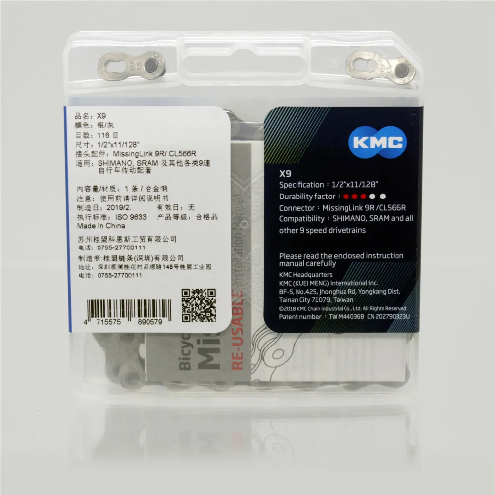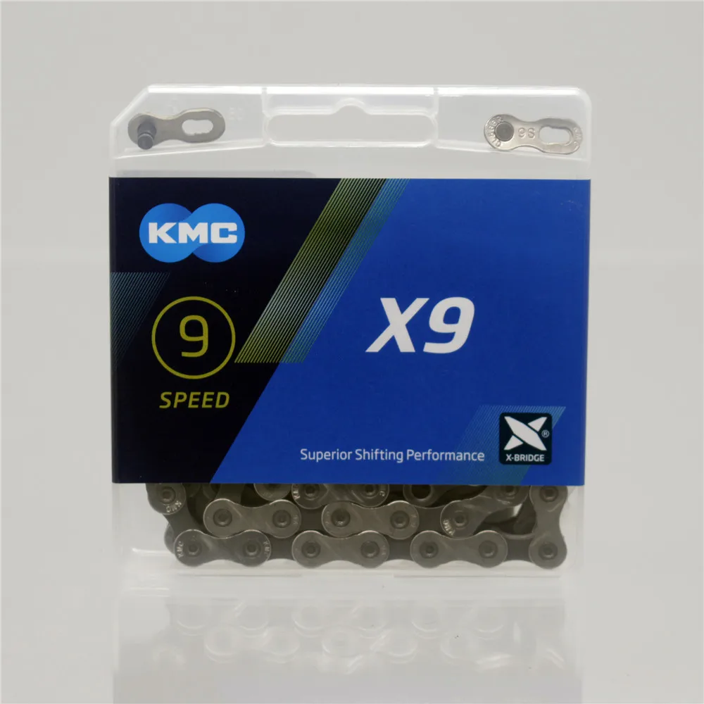 Велосипедная цепь KMC X9 MTB, велосипедные цепи 9 скоростей серии X, прочная Серебристаясерая цепь с пластиковой коробкой