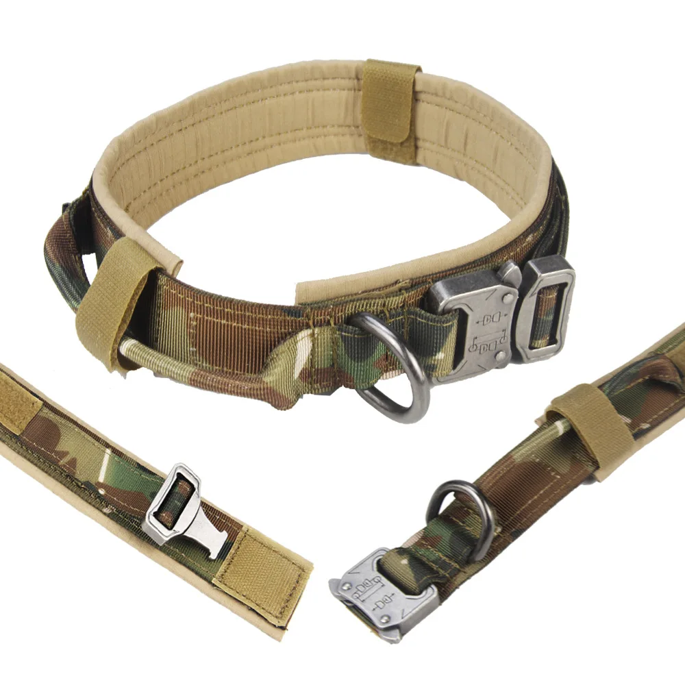 Тактический ошейник для собак, немецкий Шепард, средний ошейники для больших собак, для прогулок, тренировок, двойной ошейник для собак, ручка управления
