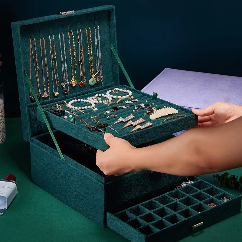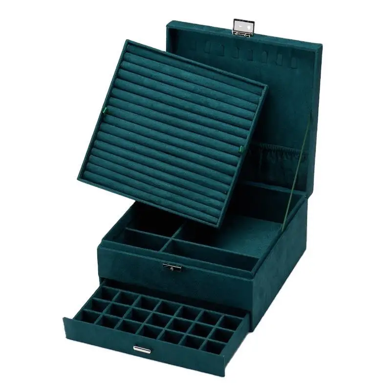 Трехслойный органайзер для ювелирных изделий, из фланели, с замком