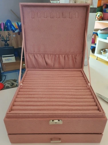 Отличная большая шкатулка для бижутерии. Все , как в описании. Продавец очень долго не отправлял покупку, за это сняла одну звезду. Но так как отправка была местная, посылка пришла достаточно быстро. Есть сильный запах, то от клея, то ли материала. Но в общем очень хорошее впечатление от товара.