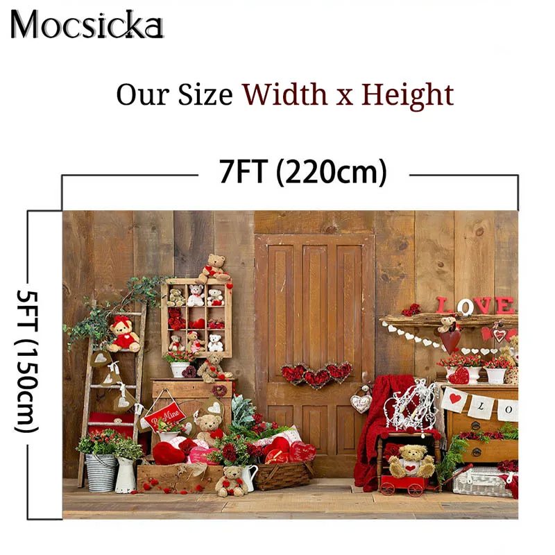 Фон для фотосъемки с изображением валентинки, красной розы и медведя