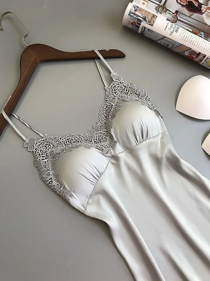 Ночные рубашки, модная Повседневная Ночная рубашка, ночная рубашка для женщин, летнее сексуальное кружевное нижнее белье, атласное Ночное платье