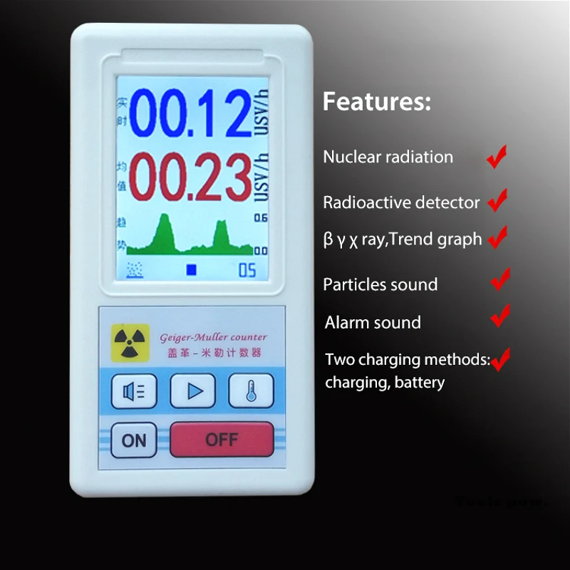Устройство поставляется со встроенными звуковыми и визуальными сигналами для уровня обнаруженного излучения.