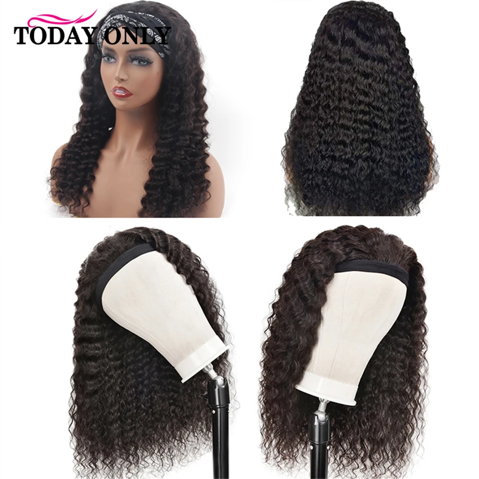 Холодная волна, парик с головной повязкой человеческие волосы без клея, бразильские волосы, кудрявые, вьющиеся, парик с головной повязкой для чернокожих женщин, 150%, плотность Реми, 180%