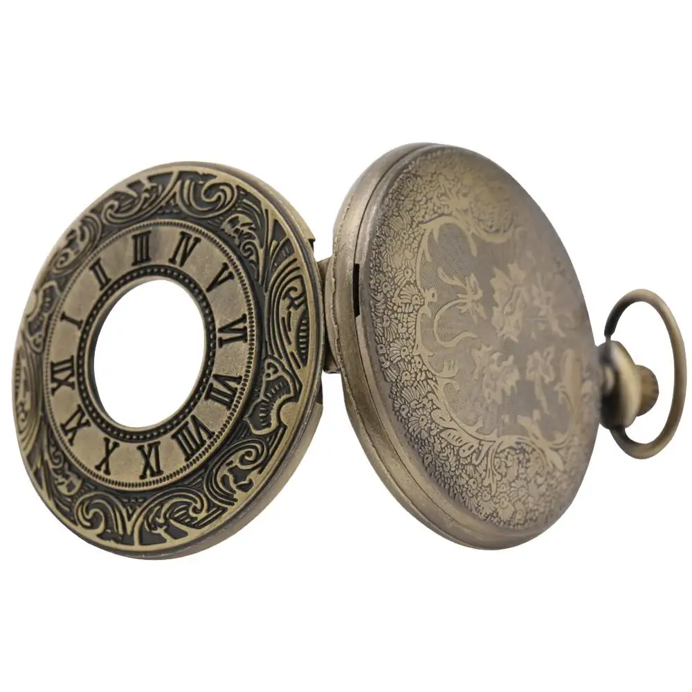Ретро бронзовые полые кварцевые карманные часы с римскими цифрами, золотые часы с циферблатом, модные и прочные цепочки, подвеска, ожерелье, подарки