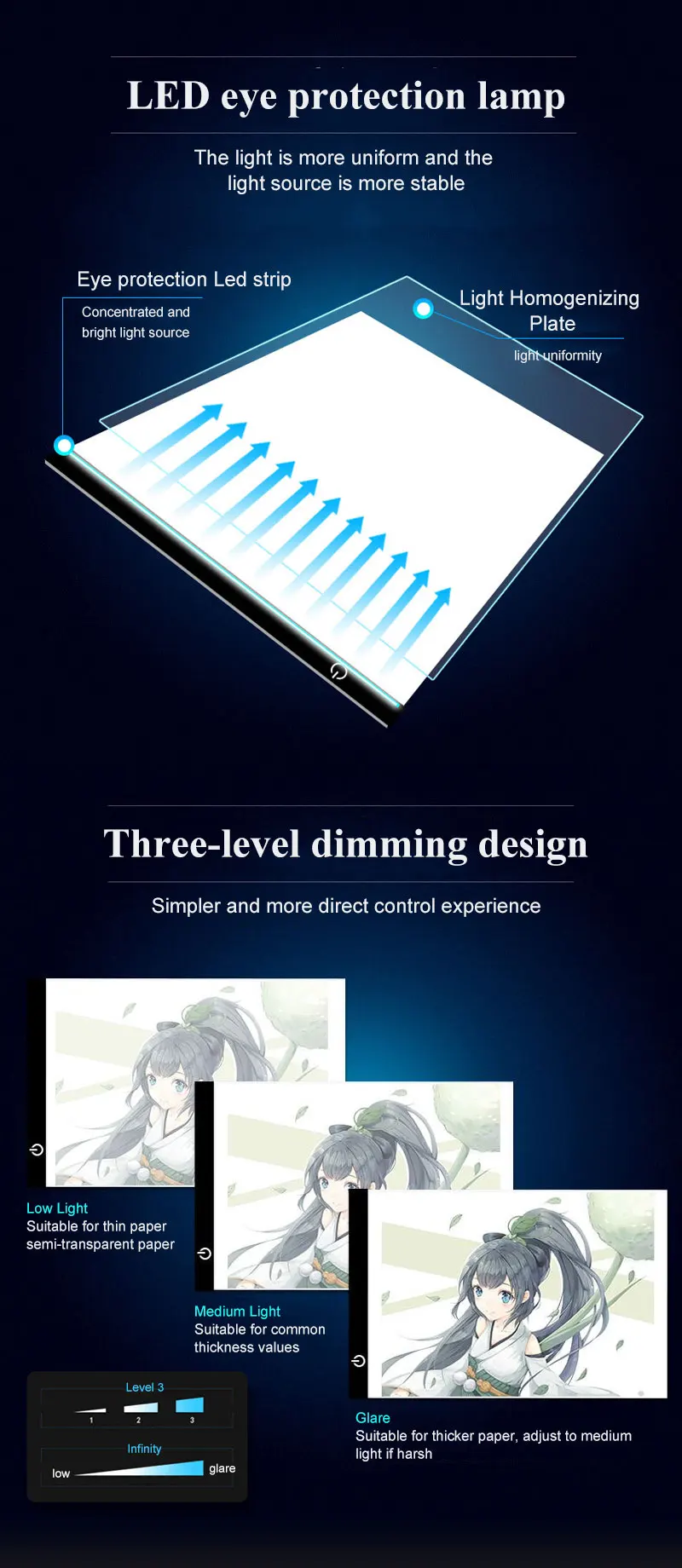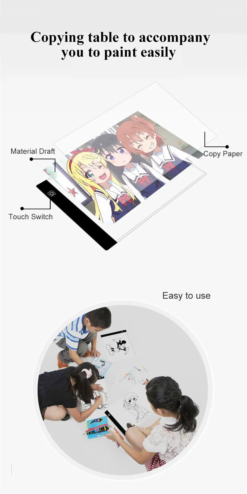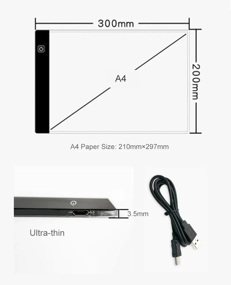 Доска для рисования и копирования, с регулируемой яркостью, 3 уровня, A4