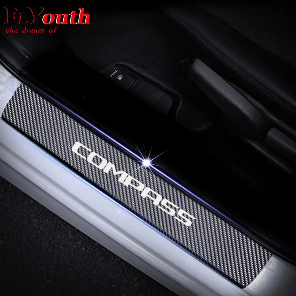 Автомобильная Накладка на порог для JEEP Compass, светоотражающая 4D Наклейка из углеродного волокна, автомобильные аксессуары для порога Педали 4 шт.компл.