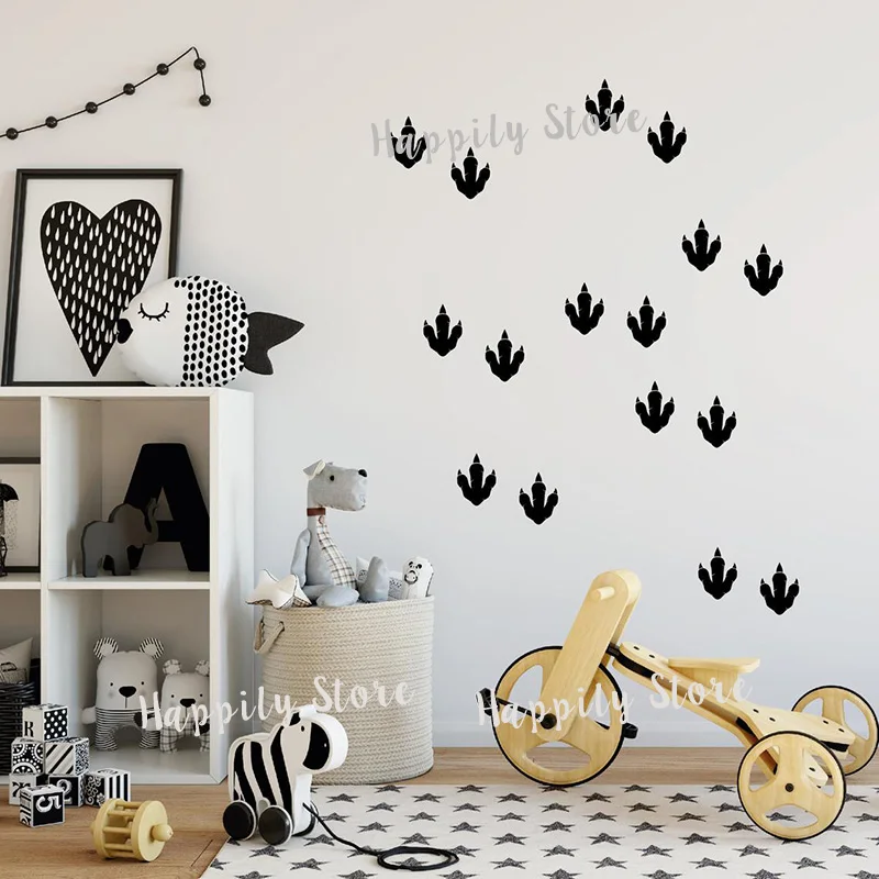 16 наклеек с изображением ног динозавра, наклейки на стену для детской комнаты, для маленьких мальчиков, девочек, для детской, спальни, Декор, настенные виниловые наклейки сделай сам P411