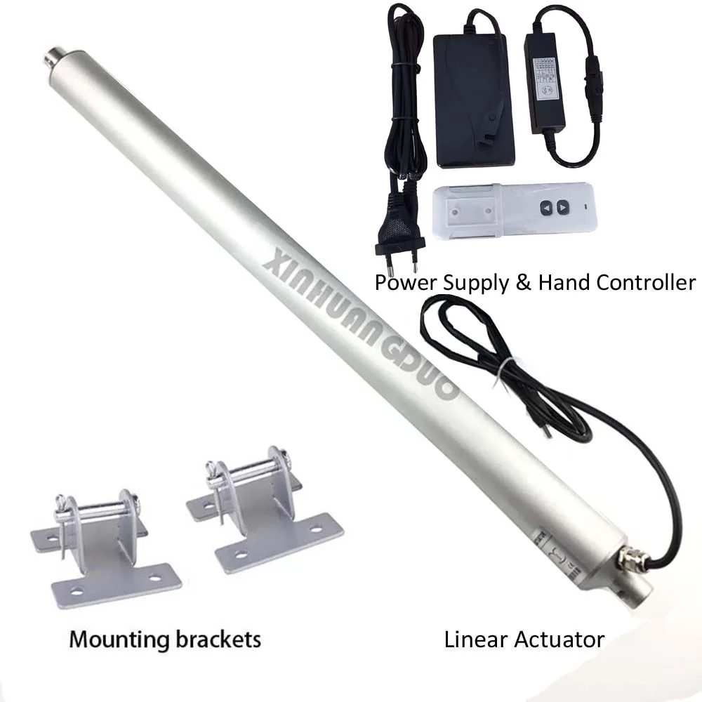24 В постоянного тока, 25-1000 мм, скорость хода 5-30 ммсекция, тяга 1500N, линейный привод, блок питания, пульт дистанционного управления, монтажные кронштейны