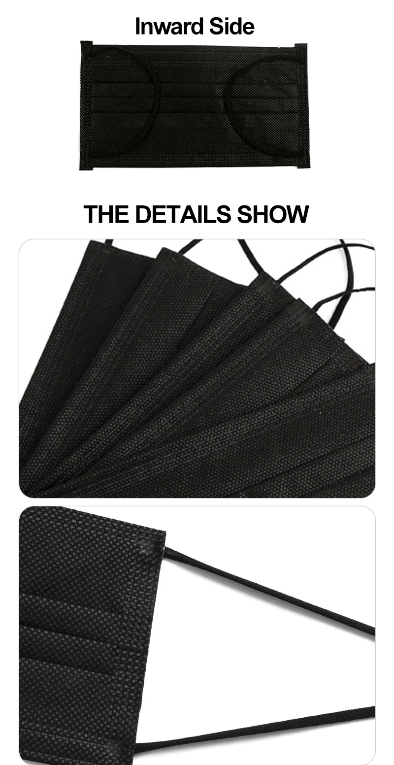 Маска одноразовая трехслойная с петлями для ушей, цветная, черная, Нетканая, дышащая, для лица, защитная, для взрослых