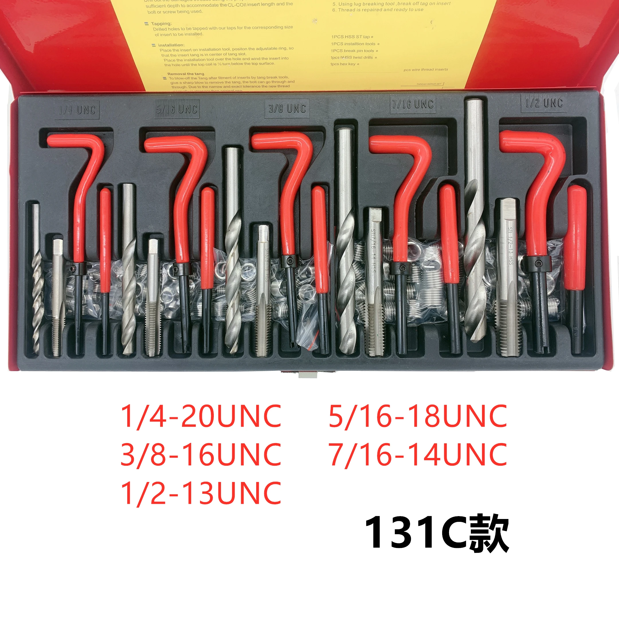 131 шт./компл.1/4-20UNC 5/16-18UNC 3/8-16UNC 7/16-14UNC 1/2-13UNCНабор для ремонта резьбы, инструмент для ремонта резьбы, совместимый набор ручных инструментов для ремонта автомобиля