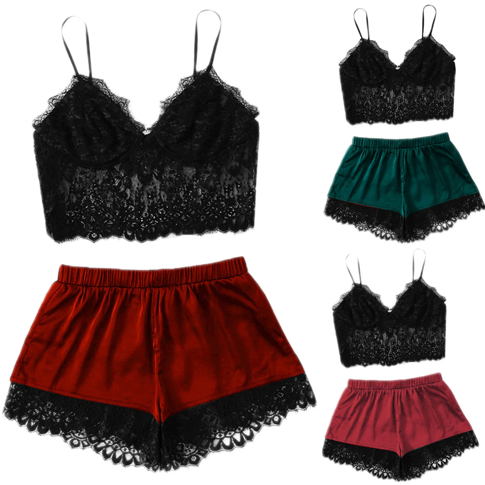 Camisoles кружевные Сатиновые пижамы для женщин сексуальная пижама, одежда для сна, размера плюс пуш-ап женский без рукавов нижнее бельё для девочек