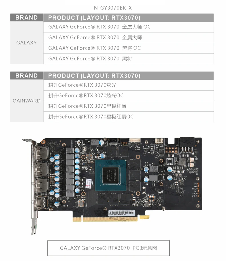 Водный блок Bykski GPU для видеокарты GALAXY Geforce RTX 3070 OC, ...