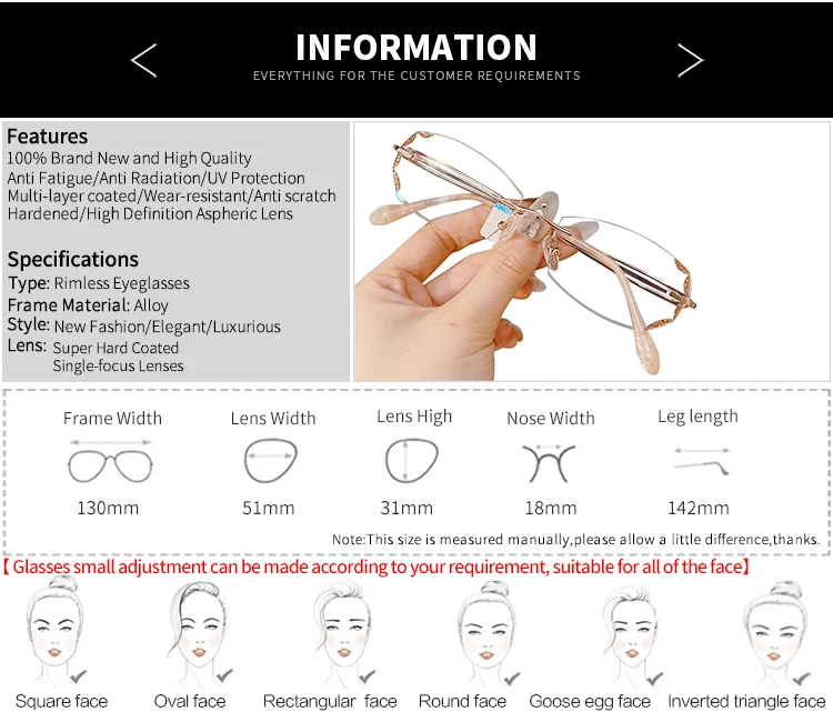 Оправа для очков женская, без оправы, с диоптриями по рецепту