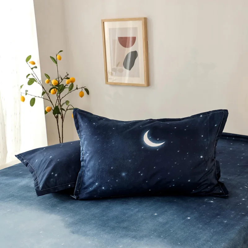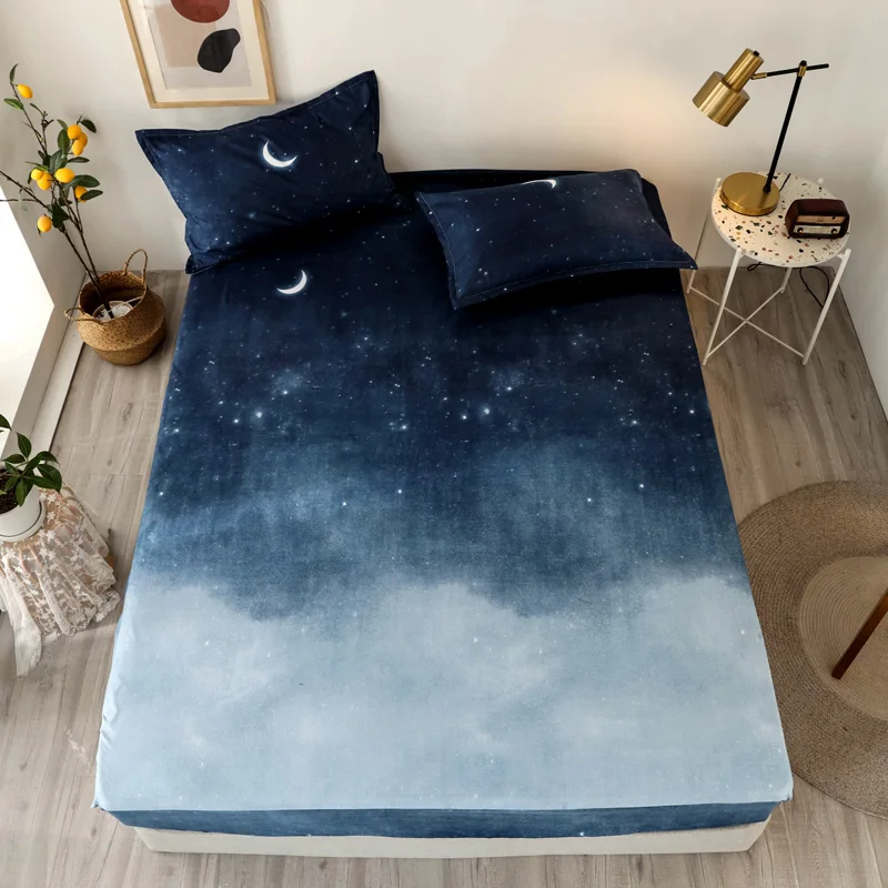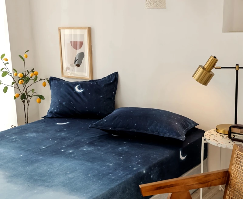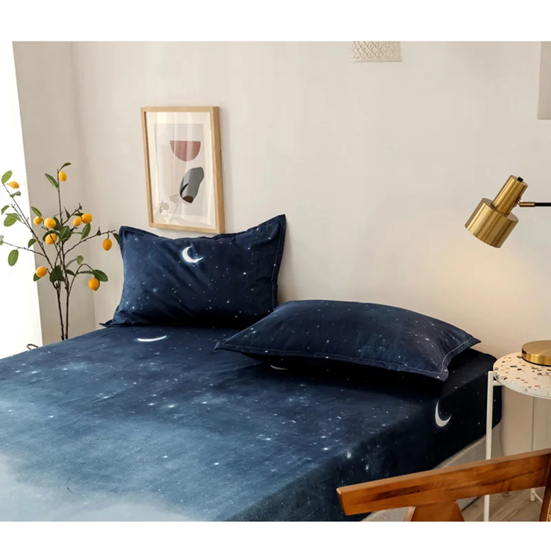 Комплект постельного белья, 3 шт., простыня на резинке, для двуспальныхкоролевскихбольших размеров, с ночным небом, простыня в простом стиле с наволочками