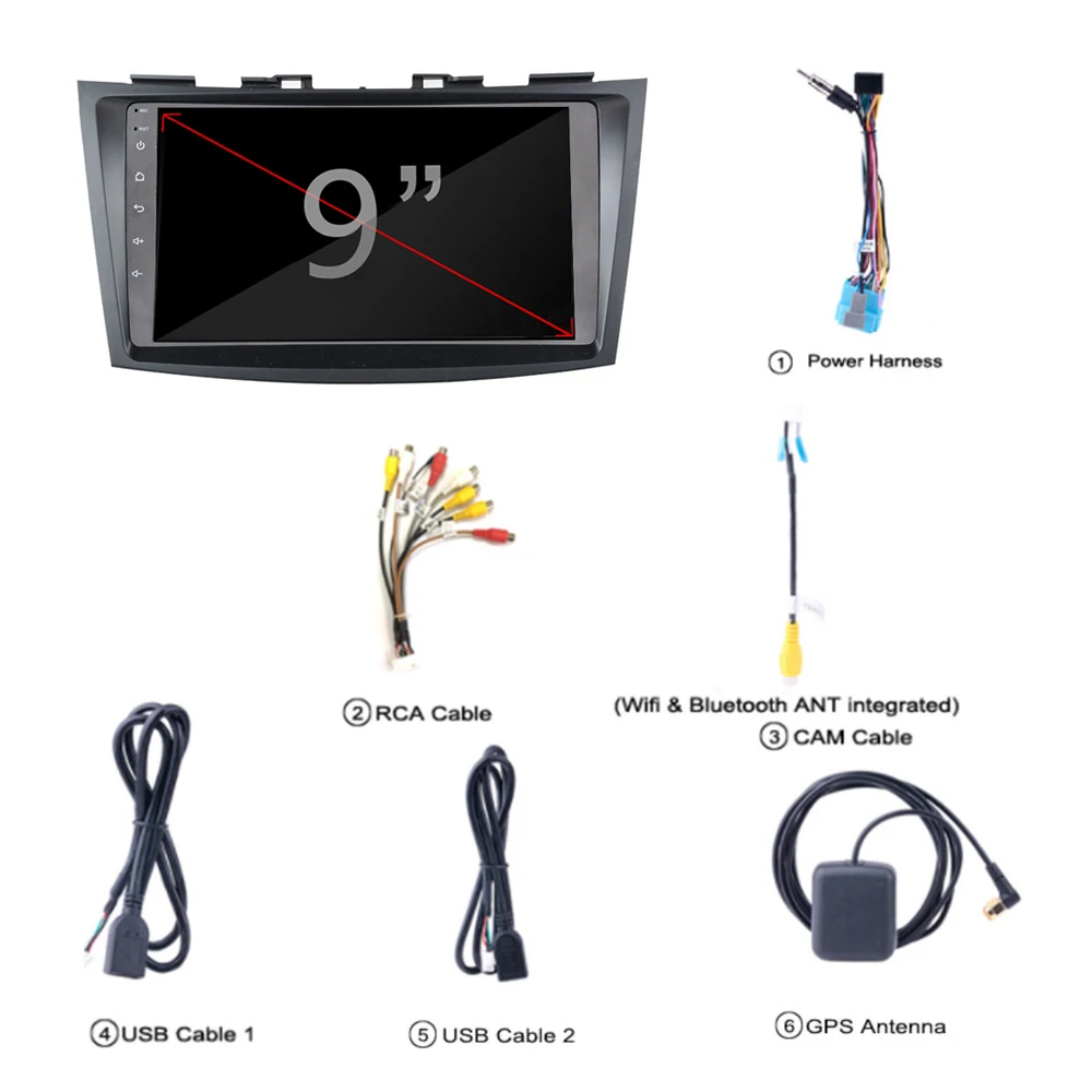 Автомагнитола 2DIN, 9 дюймов, Android 109, 1 для Suzuki Swift 2011, 2012, 2013, 2014, 2015, GPS-навигация, Wi-Fi, Carplay, мультимедийный видеоплеер