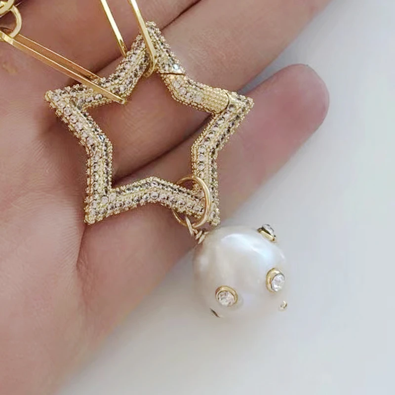 Женское короткое ожерелье в стиле панк, пятиконечная цепочка в форме звезды, карабин, соединители, кулон, ювелирное изделие в стиле барокко, жемчуг, цепи
