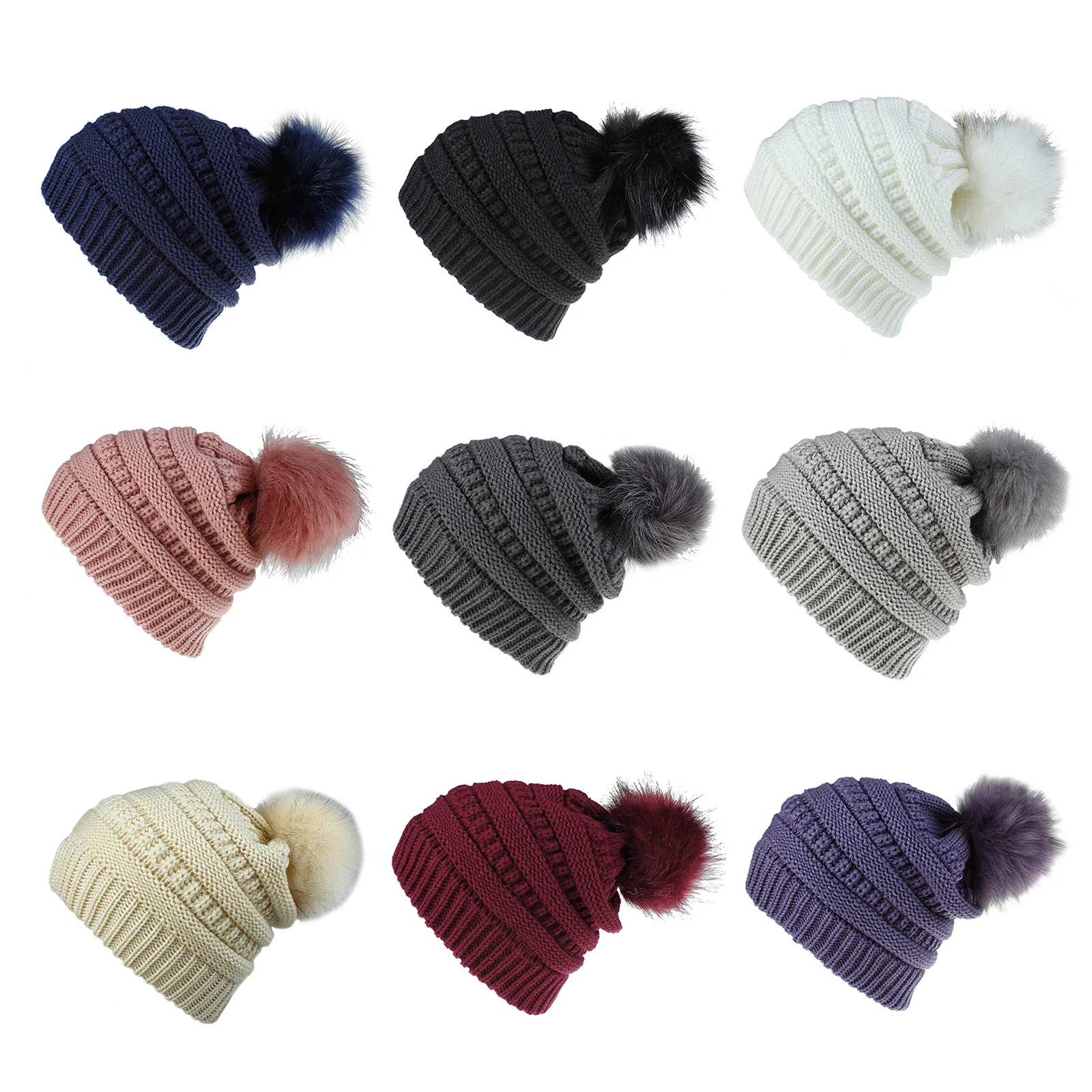 Новинка 2021, лидер продаж, модная шапка с большим помпоном для женщин, вязаная шапка с помпоном из лисьего меха 15 см, лыжная шапка с помпоном