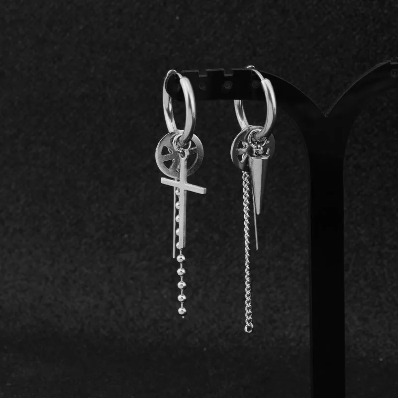 Модные мужские серьги без пирсинга в стиле панк, крест, цепочка из ...