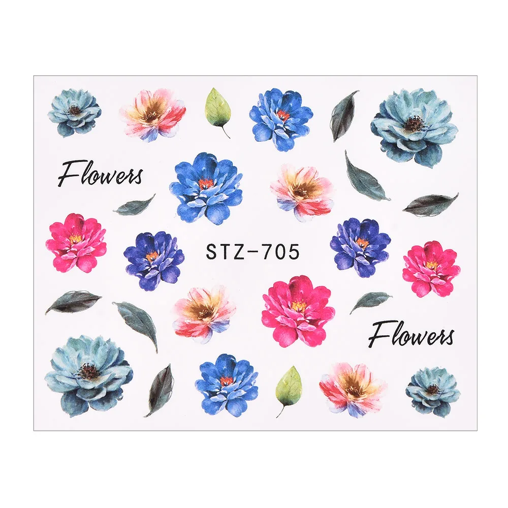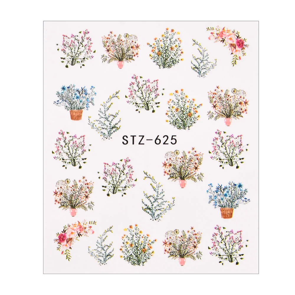 Наклейки для ногтей, с цветами и листьями, 26 дизайнов, Весенняя серия
