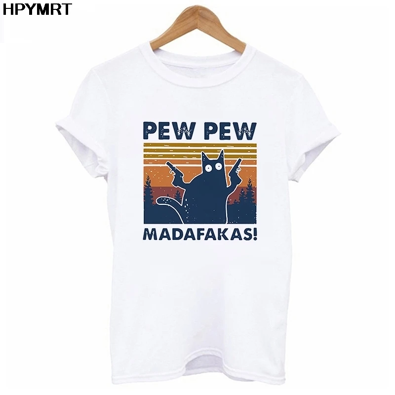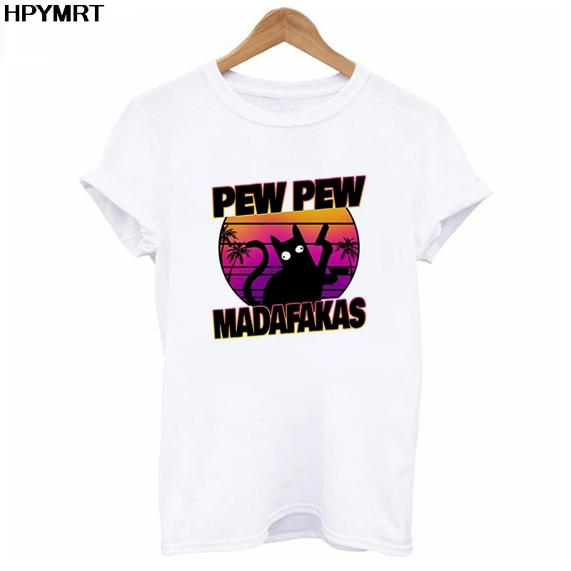 Женские футболки с принтом Pew Madafakas, летние футболки с графиче...