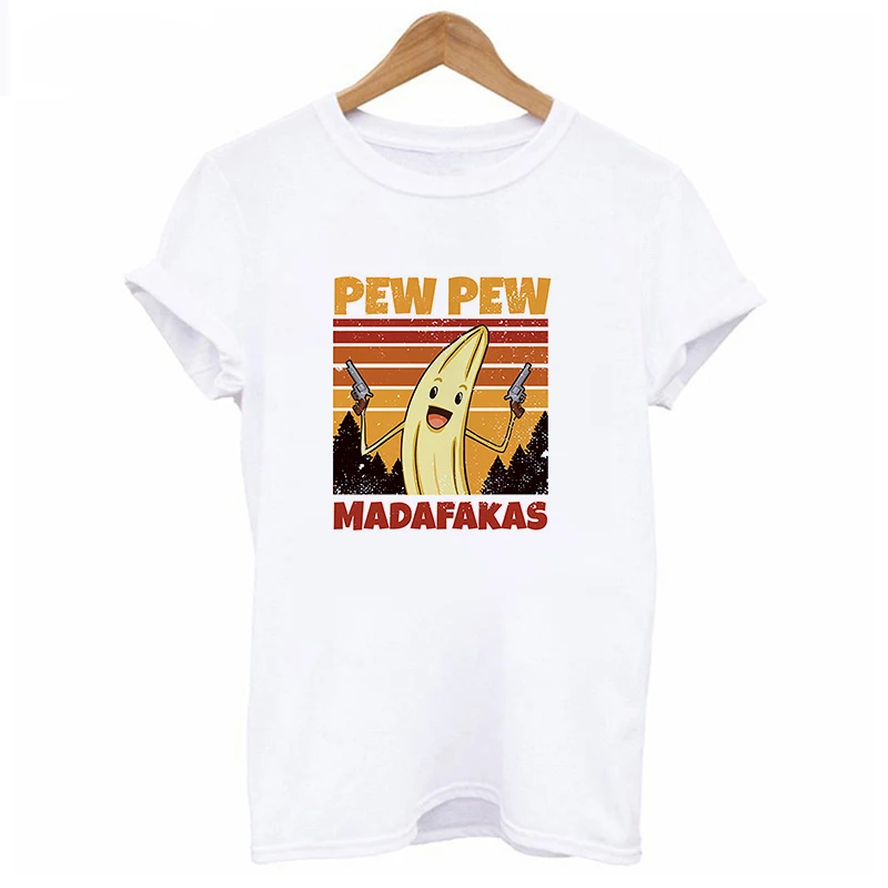 Новинка 2021, футболка с принтом банан, пев, мадафакас, кошка, гангстер с пистолетом, футболка с коротким рукавом, женские топы, одежда