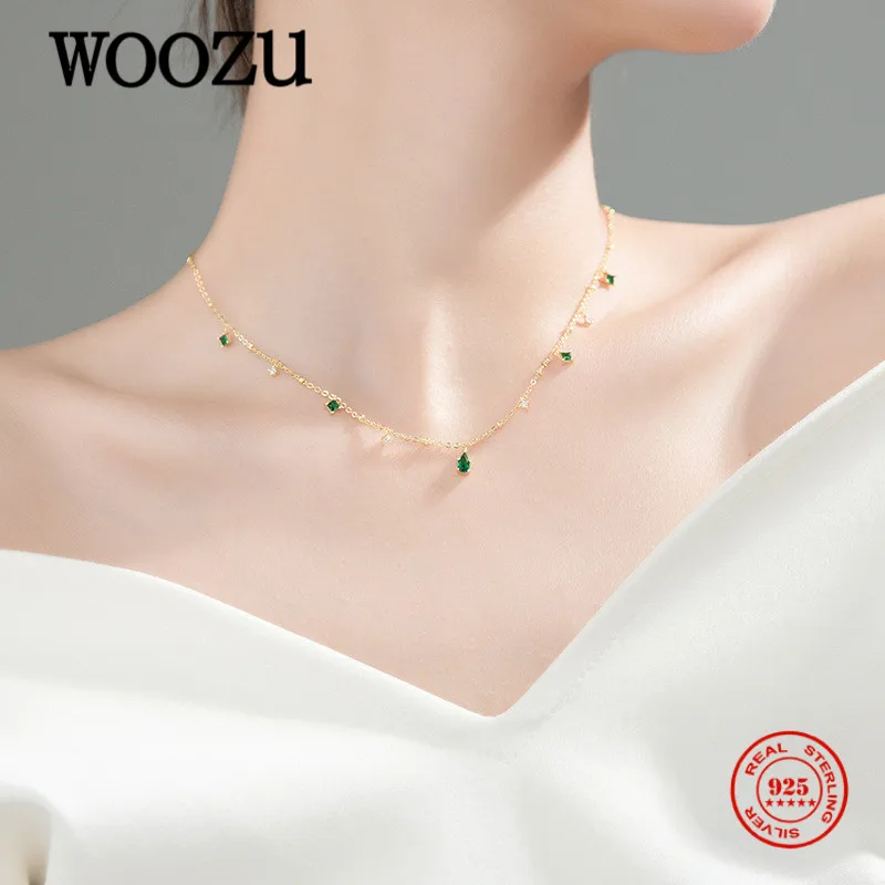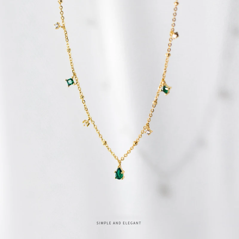 Цепочка женская из серебра 925 пробы, с зеленым цирконием