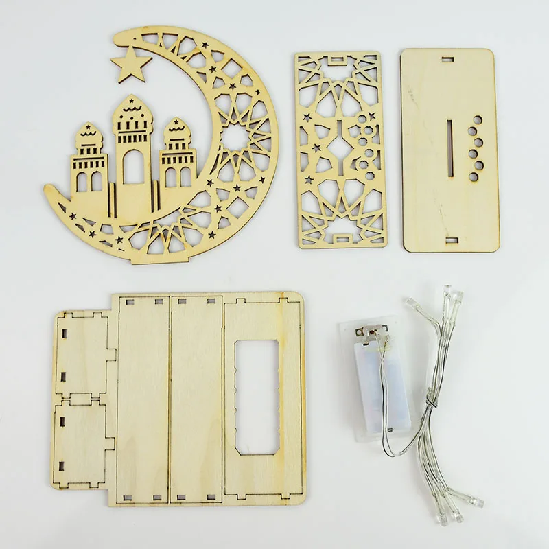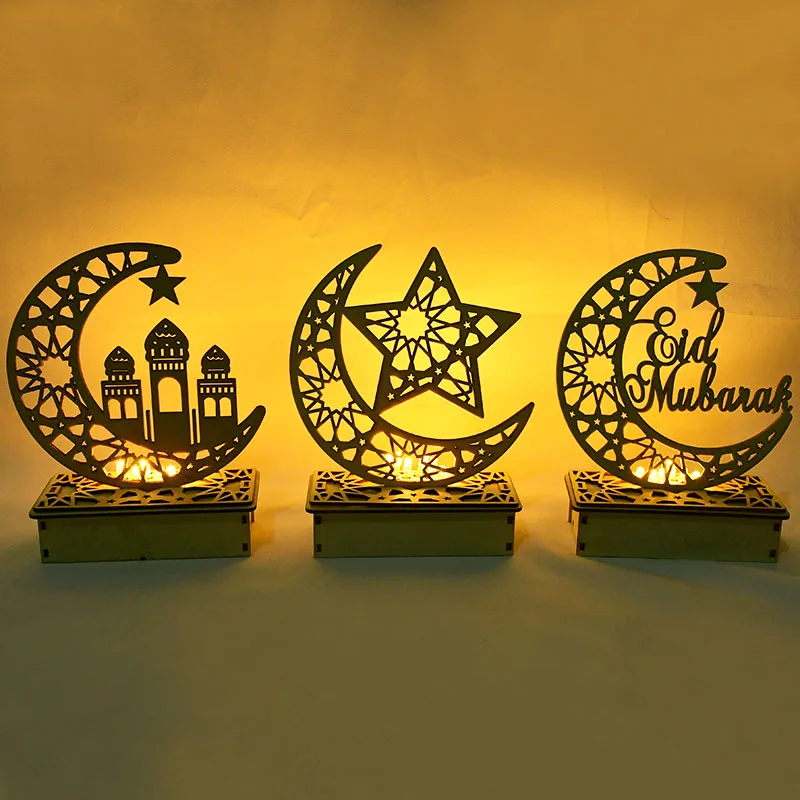 Светодиодный ИД Мубарак Деревянный DIY ремесло орнамент кулон ислам мусульманская вечерние украшение дома Al Adha Рамадан Kareem события праздвечерние чные атрибуты