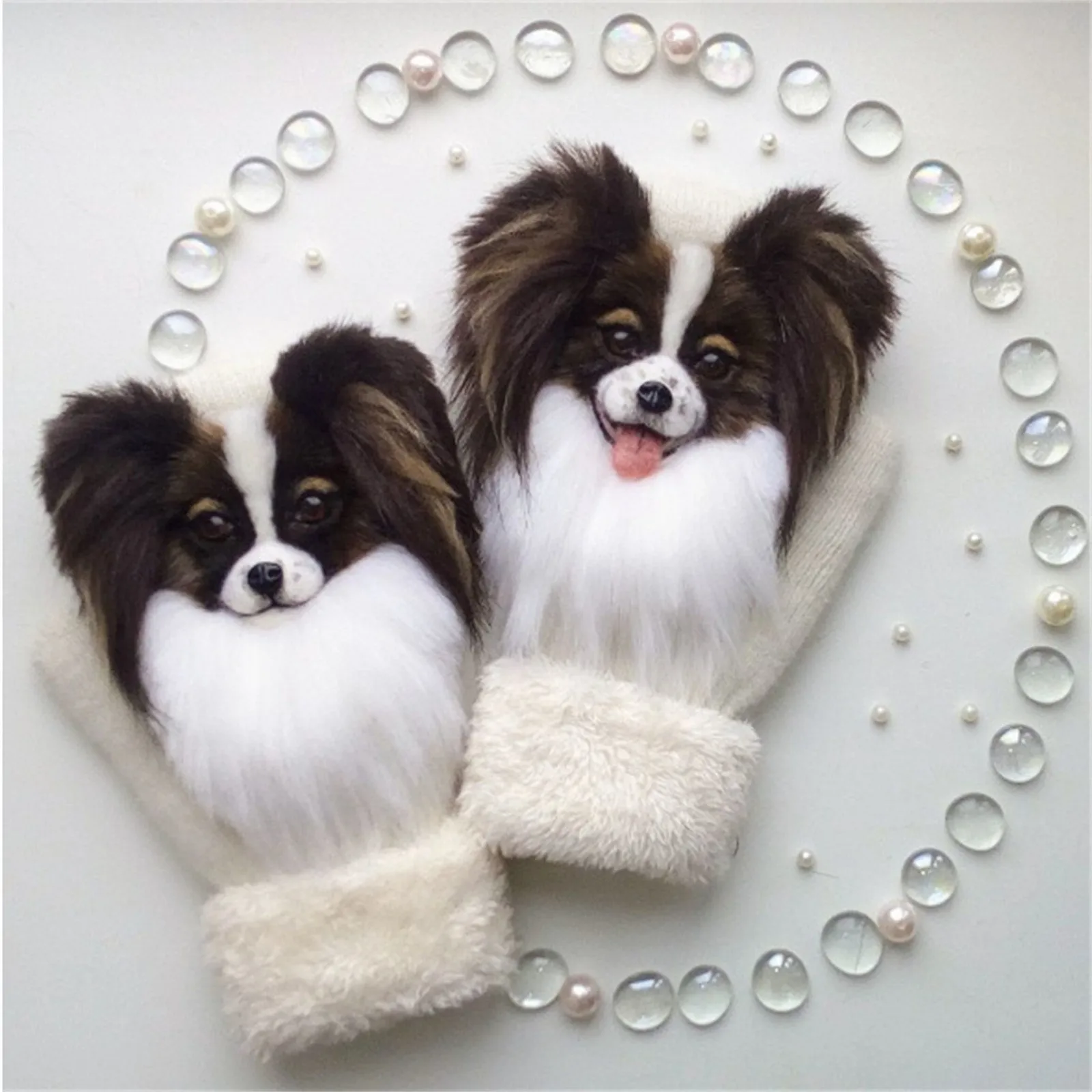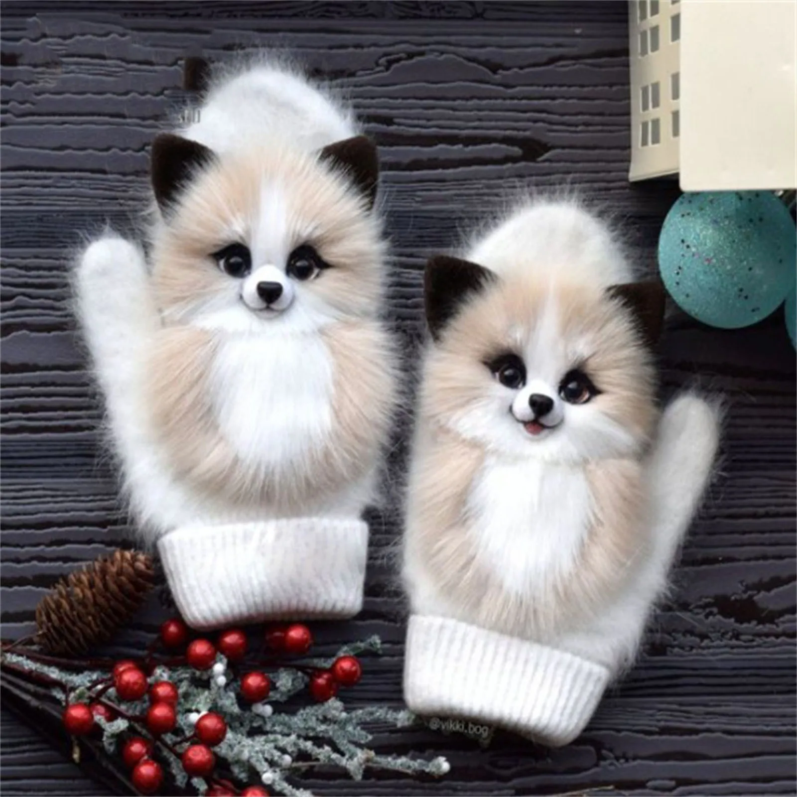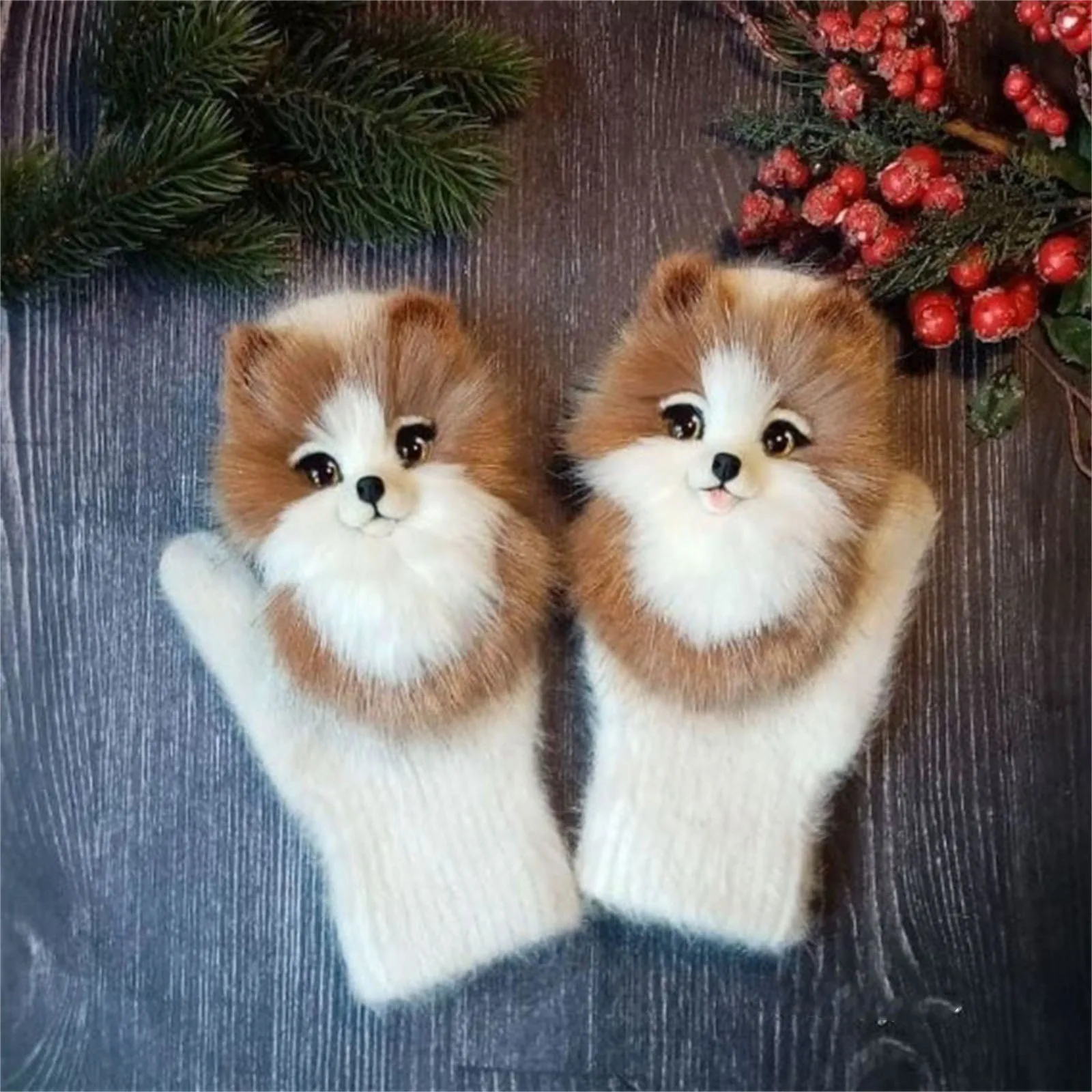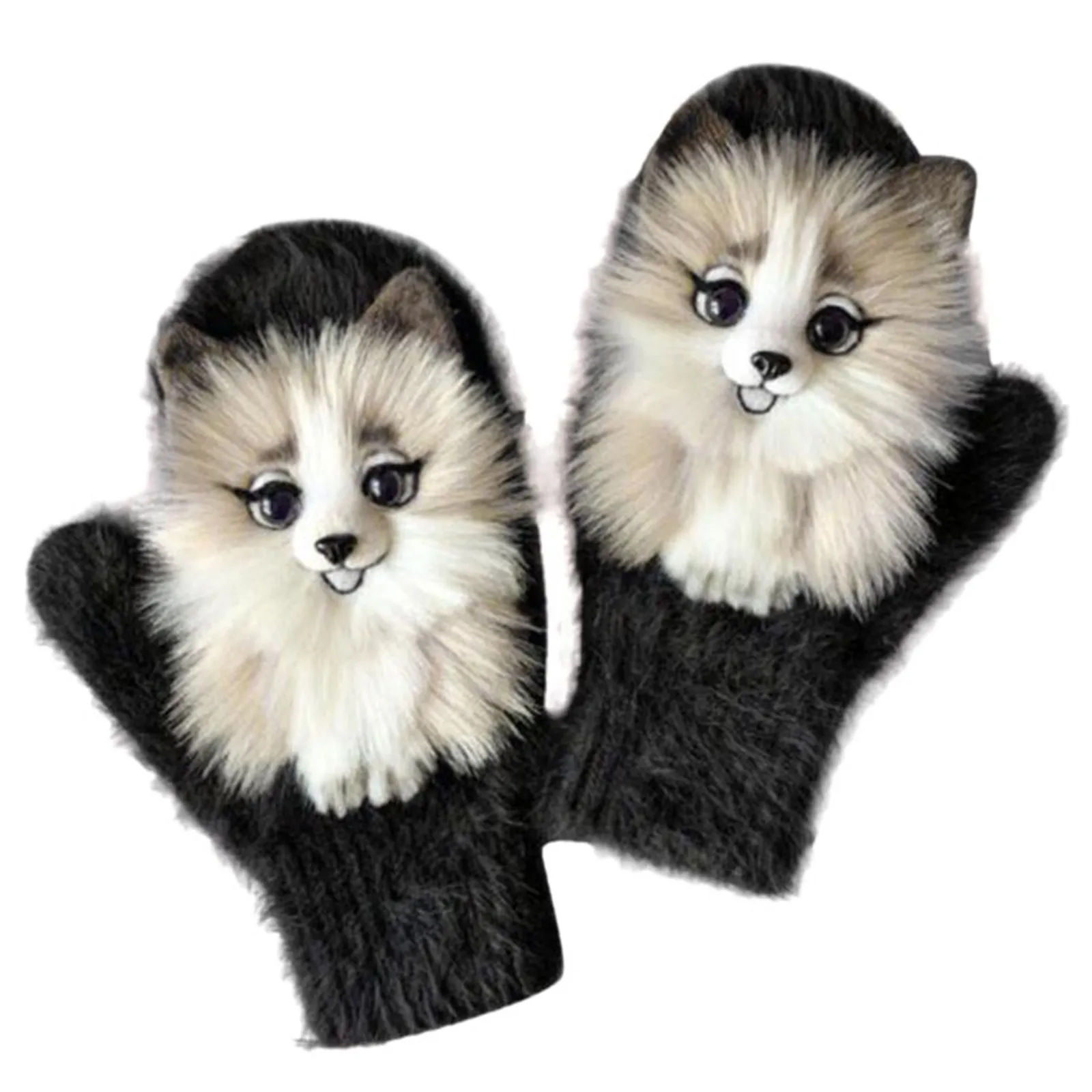 Перчатки с животным узором для осени и зимы 2020, теплые плюшевые вязаные женские перчатки с декором