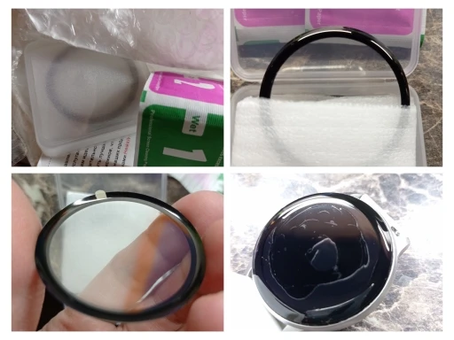 Отправка не быстрая, но доставка до Калуги заняла 12 дней. Упаковано в пластиковую коробочку и воздушный почтовый пакет. Дошло без повреждений. Салфетки влажные. Протектор - толстая плёнка, не стекло. По размеру и форме совпадает со стеклом часов. Но клеится ужасно. Остаются пузырьки воздуха. Пробовали разглаживать и на воду. Результат один - пузыри. Открывали спор. Арбитраж в пользу продавца. Месяц оставались пузыри. Регулярные попытки выдавить воздух. В итоге через месяц в течение недели воздух таки выдавился. Причины так и не известны. Рекомендовать не могу. Хотя в итоге спустя месяц получили то, что заказывали.))