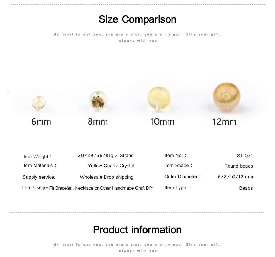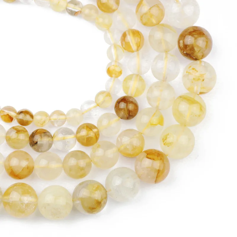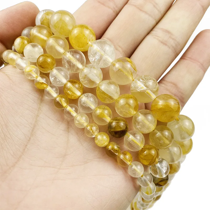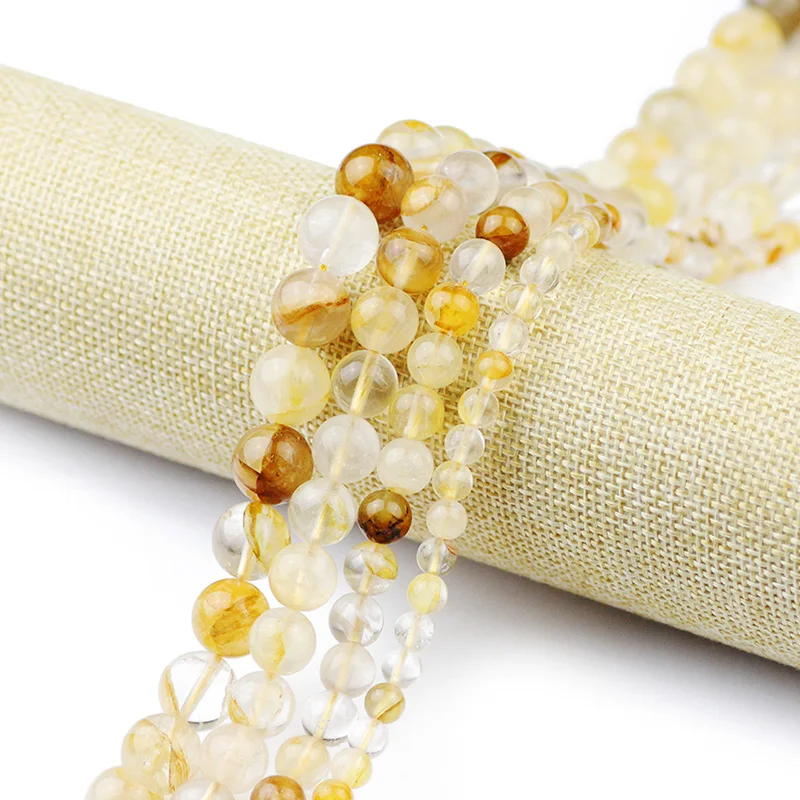 Круглые натуральные желтые кварцевые кристаллы, импорт из Гонконга, каменные бусины-разделители россыпью для изготовления ювелирных изделий, аксессуары сделай сам, оптовая продажа