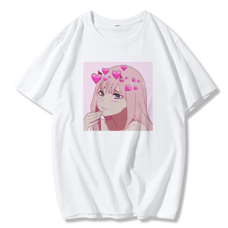Kawaii женская футболка с японским аниме нуль два любимых в Franxx милый топ с принтом Harajuku свободная летняя новая футболка с круглым вырезом