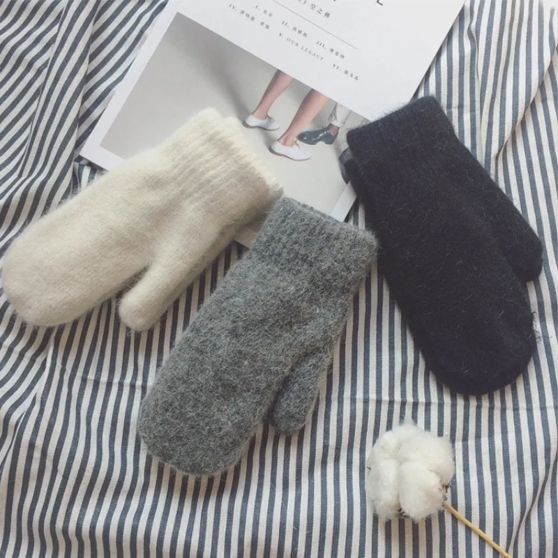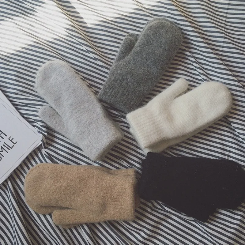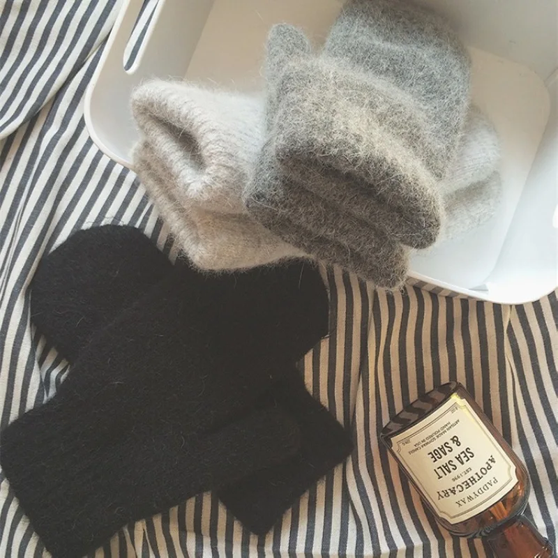 Варежки женские зимние, кашемировые, эластичные, с искусственным кроличьим мехом